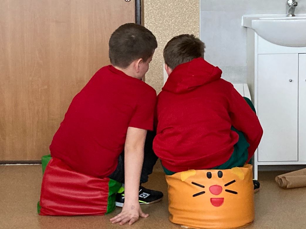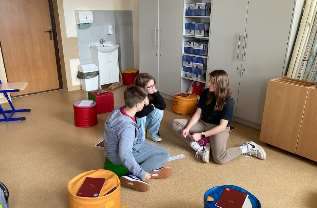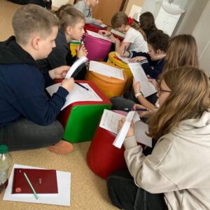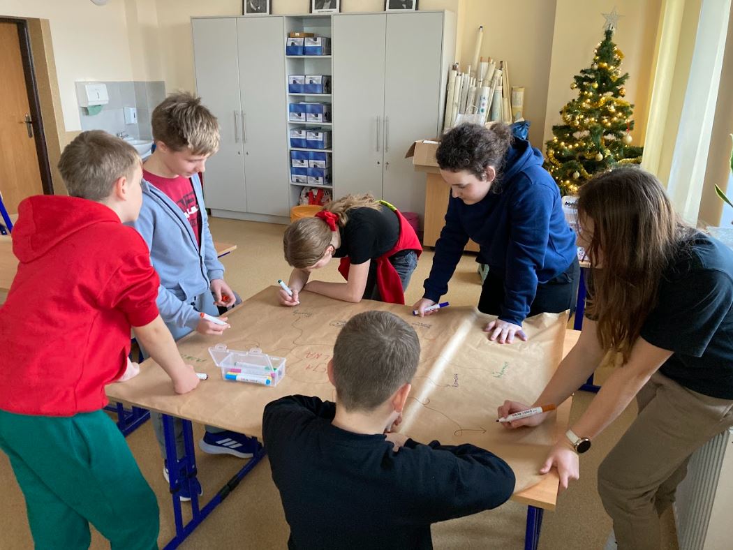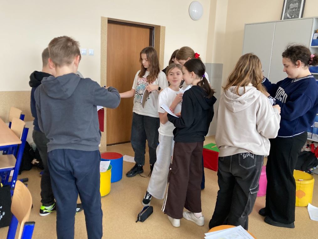 Zajęcia odbywały się w dwóch grupach: dziesięciu uczniów z klas II – IV (prowadzi je pani Magdalena Przetacznik) oraz dziecięciu uczniów z klas V – VIII (prowadzi je pani Barbara Sowa). Podczas tych pierwszych warsztatów określaliśmy swoje mocne i słabe strony, nazywaliśmy swoje potrzeby i emocje oraz poszukiwaliśmy różnych sposobów na radzenie sobie ze stresem.